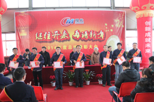 表彰完毕,王总对公司2014年各项工作进行了总结,并对新一年的工作进行了规划部署。王总指出,2014年在全体员工的共同努力下,公司各项工作稳步推进并取得可喜的成绩:无纺基建工程及设备安装顺利完成,土工格室生产线组装完成并投产出口,产品质量管理日趋完善,销售收入再创新高……公司圆满实现各项生产经营指标。2015年,我们将面对新的挑战与机遇,根据公司战略发展要求,将2015年定为组织学习年,公司将研究启动各项有效培训学习活动,提升全员素质,保证公司5年内持续发展的后劲;同时,公司将进一步提升管理水平,完善各项管理制度、流程,并深化技术创新工作,挖掘现有生产潜力,进一步提升品牌实力与行业地位……希望全体员工团结一致,振奋精神,鼓足持续发展的动力,向新的目标迈进!