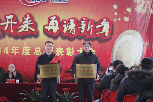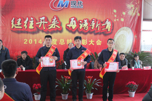 2015年2月16日上午8:30,现代塑料一号车间布置一新,全体员工整齐就坐,公司2014年度总结表彰大会在此隆重举行。